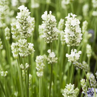 Mit dem Lavendel Lavandula - angustifolia 'Nana Alba' werden Sie im Garten wunderschöne Akzente setzen können. Die Wuchshöhe beträgt etwa 30 cm und die Pflanze liebt sonnige Plätze. Der hübsche weiße Blüte erscheint von Juni bis Juli und zieht Bienen wie auch Schmetterlinge in Scharen an. Damit sich dieser außergewöhnliche weiße Lavendel gut entfalten kann, sollte ein Pflanzabstand von 30 cm eingehalten werden.
